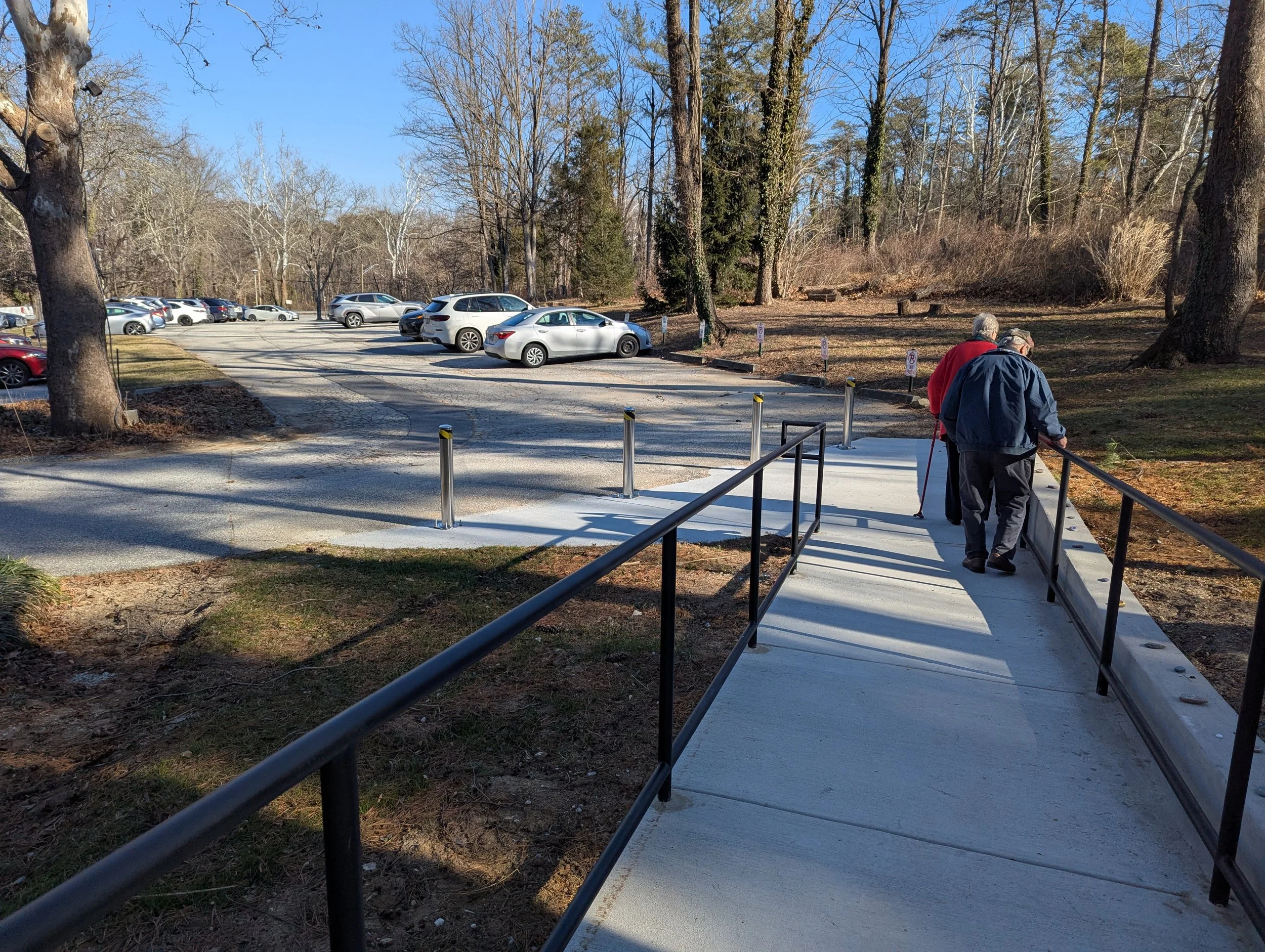 The project is underway to improve accessibility by replacing the side ramp and door. The railings are in and the new door is in; however, the automatic opener cannot be used yet. There is planned work in January to install a fob reader and integrate our access control system with the push button opener. Bollards have been installed at the base of the ramp. We're nearing completion!